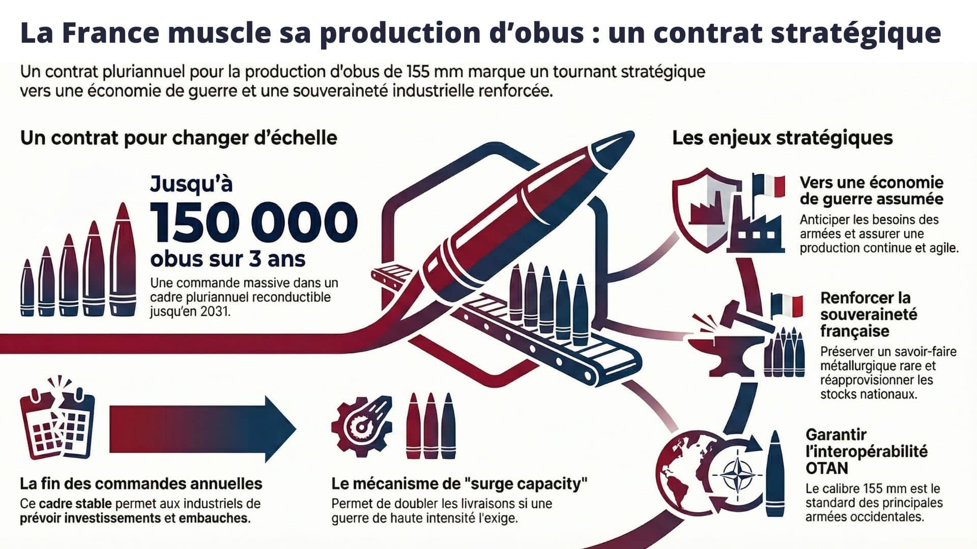 La plage de 60 000 à 150 000 obus sur trois ans permet de répondre à une demande en forte hausse, notamment due à la consommation massive de munitions en Ukraine. Le calibre 155 mm, standard OTAN, est utilisé par la quasi-totalité des armées occidentales. Cette commande anticipe les besoins à long terme : réassort des stocks, soutien à l’Ukraine, et constitution d’une réserve nationale de crise.