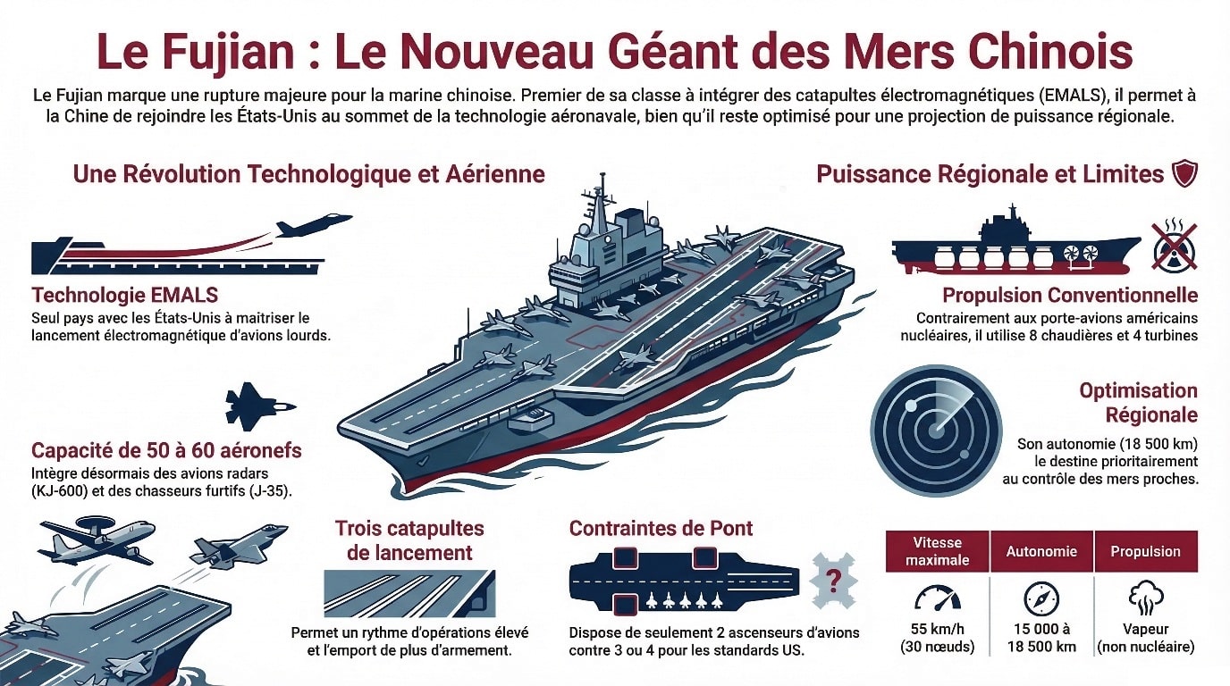 Autrement dit, le Fujian est puissant… mais encore optimisé pour un usage régional plutôt que mondial.