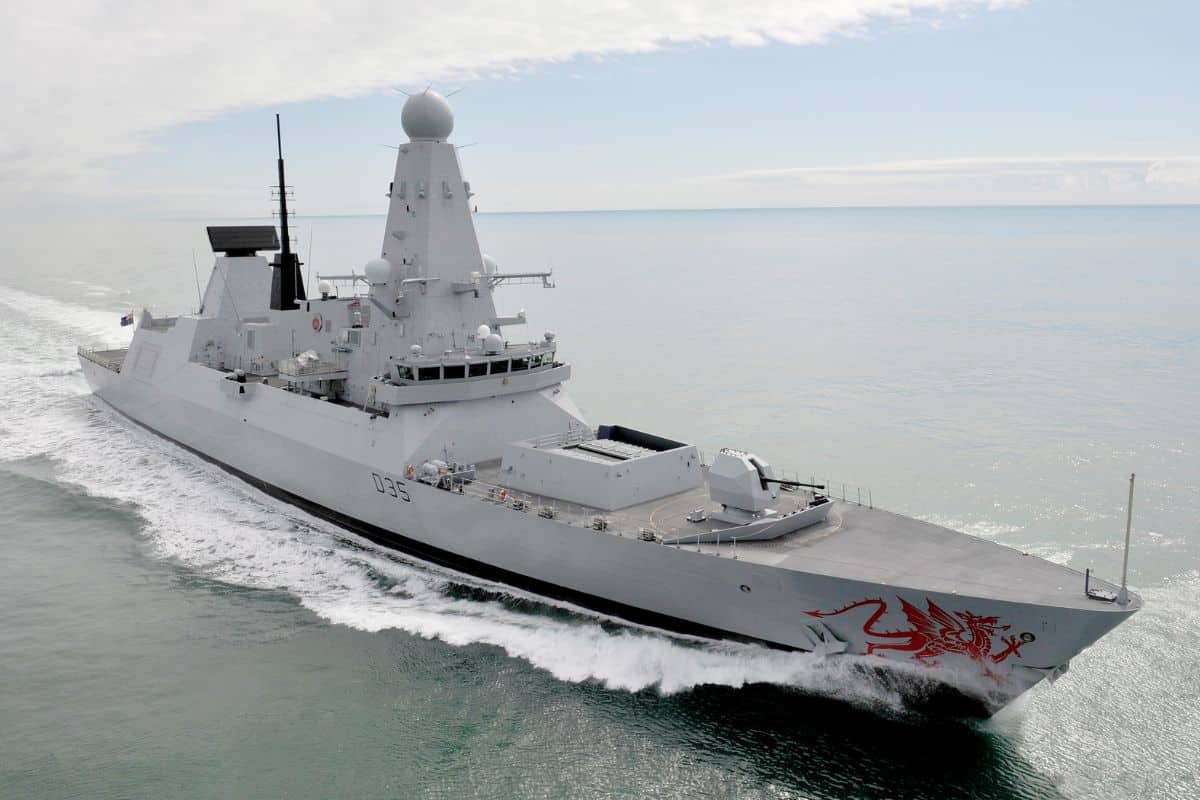 Armé du système Sea Viper et de missiles Aster, ce navire de guerre de 152 mètres accompagne les groupes navals britanniques dans les zones de tension.