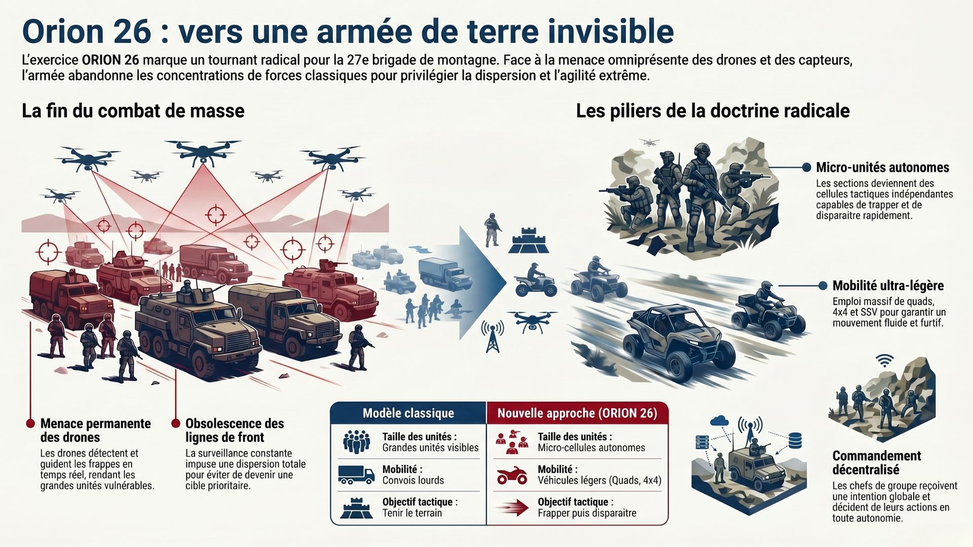 La France teste une doctrine radicale avec ORION 26 : la 27e brigade de montagne remplace ses grandes unités par des cellules autonomes sur quads et 4x4 invisibles aux drones ennemis