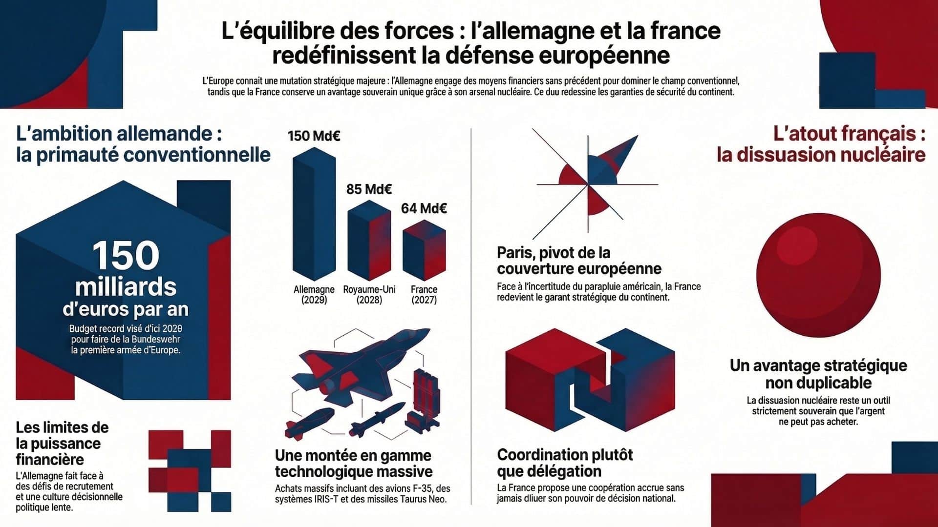 Depuis des années, l’Allemagne promettait de rattraper son retard. En 2026, elle dit vouloir dépasser la simple remise à niveau. Derrière les annonces, il y a une question brutale : que vaut une armée très riche si la couverture stratégique devient incertaine ? Dans ce vide, Paris et Londres redeviennent des pivots, parce qu’ils portent la dimension nucléaire que le reste de l’Europe n’a pas. Et cette bascule impose un débat plus vaste que les chars et les avions : qui garantit quoi, et à quel prix politique ?