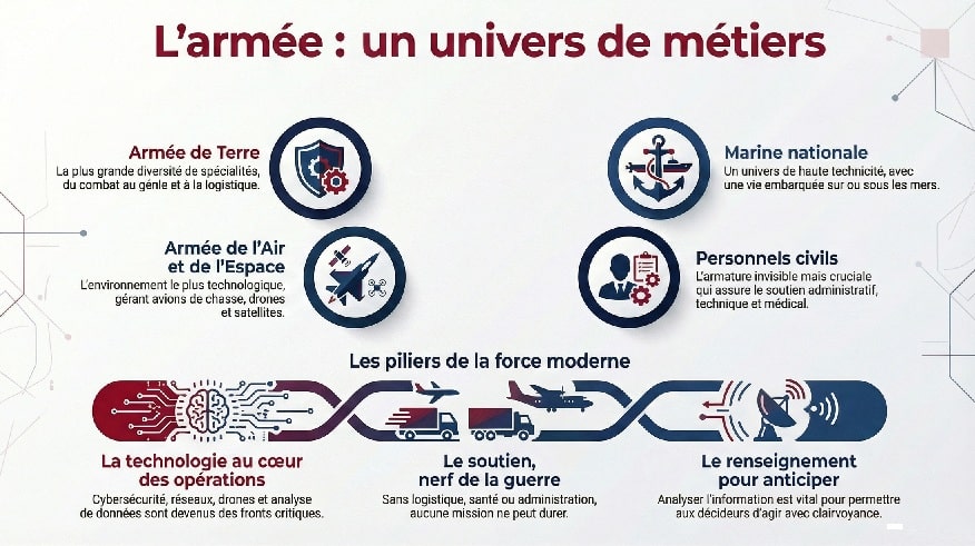 L’armée n’est plus un métier unique. C’est un système professionnel complet, où chacun, à sa place et avec ses compétences, contribue à une mission qui le dépasse : la défense du pays et de ses valeurs.